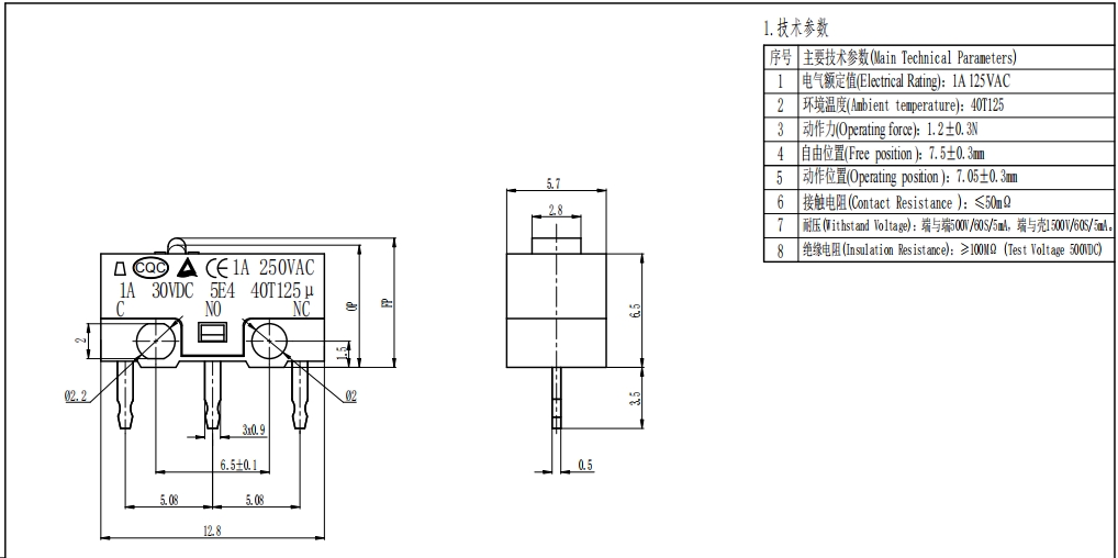 Patentli anlık hızlı tetikleme mekanizması kullanan tetikleme tepki süresi ≤8 ms'dir ve geleneksel mikro anahtarlara kıyasla performansı %25 artırır. Tetik hareketi, 1,5-4N çalışma kuvveti aralığıyla 0,3-1,0 mm arasında hassas bir şekilde kontrol edilir. Basma geri bildirimi, takılma veya serbest oynama olmadan net ve canlı olup, yüksek tetik hassasiyeti gerektiren senaryolar için mükemmel şekilde uygun olan 'bağlanmak için hafif dokunuş, kırmak için serbest bırakma'nın hassas kontrolüne olanak tanır. Kontaklar yüksek saflıkta gümüş-kalay alaşımından yapılmıştır ve ≤30mΩ başlangıç kontak direnciyle hassas nokta kaynağıyla işlenmiştir. Nominal yük, 1A/250V AC ve 3A/125V AC'yi destekler ve akım geçtiğinde temasın ısınmasını veya yanmasını etkili bir şekilde önler.