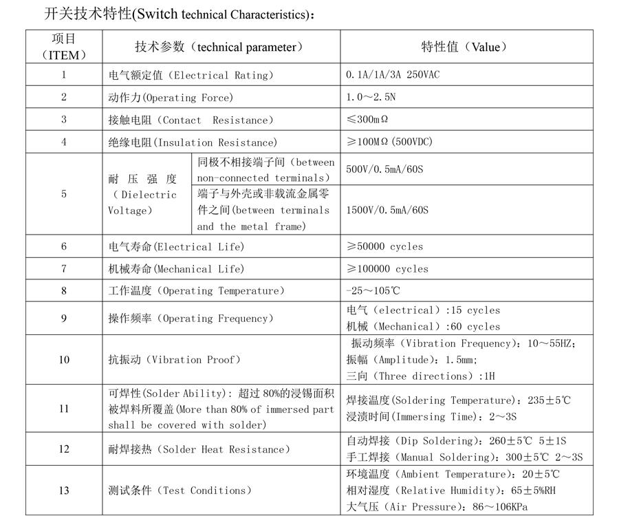 | 12 | Yalıtım Direnci | Daldırma Lehimleme :260±5°C 5±1S Manuel Lehimleme :300±5°C 2~3S |