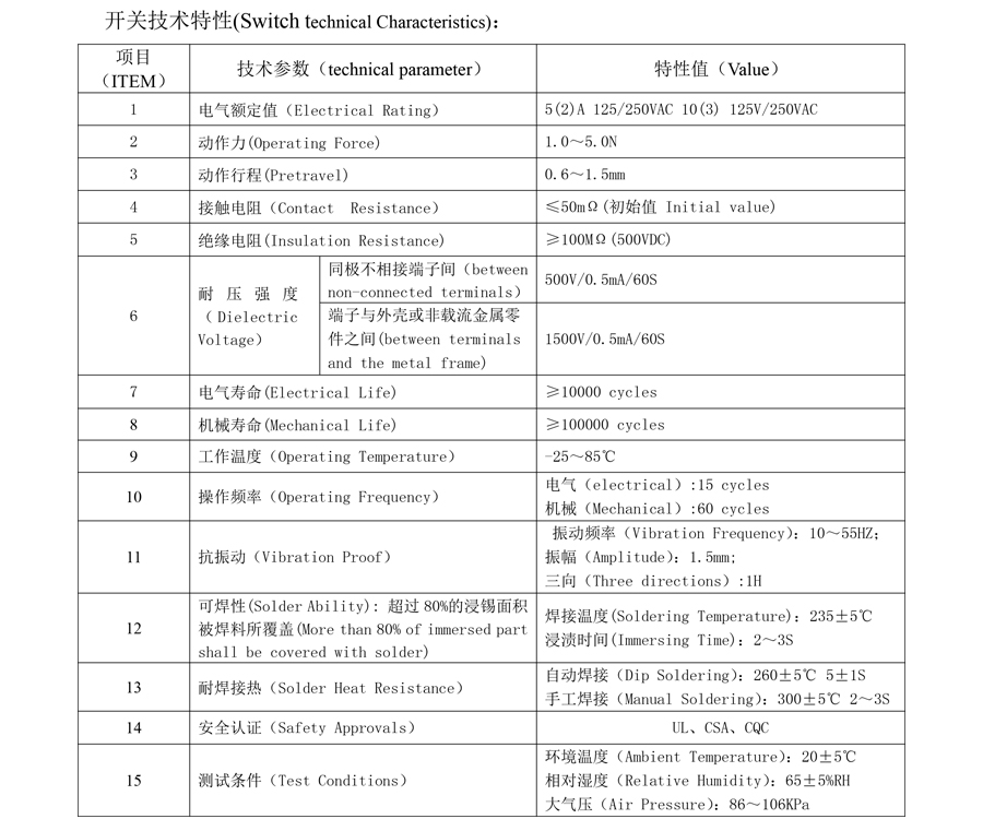 | 4 | Kontak Direnci | ≤50mΩ Başlangıç değeri | |